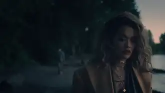 Screenshot from the music video of "Your Song", displaying Rita Ora and her love interest in the background.[71]