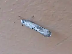 Yponomeuta irrorella is a moth of the family Yponomeutidae. It is found in most of Europe, except Ireland, Norway, Belgium, the Iberian Peninsula and the western and southern part of the Balkan Peninsula.