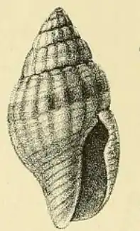 This minute, ovate species contains 6-7 whorls. It is principally conspicuous for its smooth longitudinal ribs, with no revolving lines, the ribs themselves being often obsolete on the body whorl, wholly or, at all events, in part. The beautiful zigzag painting, like lightning-flashes, is also characteristic. The oblong aperture is narrow. The outer lip is slightly incrassate with few denticles inside.The simple columella is shining. [2]