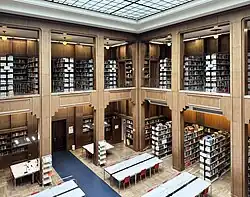 The institute is supported by the Bavarian State Ministry of Sciences, Research and Art, and is supervised by an international board of trustees.[1] It defines itself as both a place of academic exchange and a platform for international encounters.[1] It organizes lectures and symposia and edits various art history publications, for instance, the Reallexikon zur Deutschen Kunstgeschichte[2] and the Kunstchronik,[3] an art journal featuring articles on museological matters, important exhibitions and art-historical conferences, and the preservation of monuments and historic buildings.[1] The institute also maintains one of the world's most comprehensive art libraries,[4] with more than 650,000 volumes, 1,200 current periodicals and over 75,000 auction sales catalogues,[5] and an extensive collection of photographs of artworks.[6]