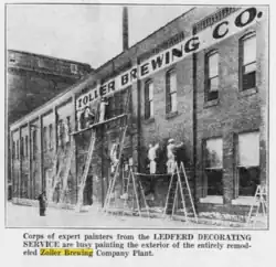 Brothers Ernest, Herman and Charles Zoeller established the Zoeller Brothers Malt House in the mid-1880s in the Black Hawk area of Davenport's west end.[3] In 1890 they reopened the Black Hawk brewery their father, Ernst Zoeller Sr., had operated prior. In 1894 all the breweries consolidated into a single corporate structure called The Davenport Malting Company. They built this building in an industrial section of the west end that contained some of the first refrigeration equipment used in the city.[2] As they built new additions on to the plant they closed the older structures. Production reached a high of 75,000 barrels of beer by 1916, and it became the second largest brewery in Iowa.[2]