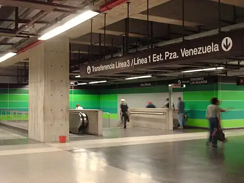Zona Rental is a Caracas Metro station on Lines 4 and 5. It is a terminus of both lines. Line 4 station was opened on 19 July 2006 as part of the inaugural section of the line between Capuchinos and Zona Rental. The adjacent station is station is Parque Central. On 3 November 2015 the first section of Line 5 was opened. It consists of only two stations, Zona Rental and Bello Monte.[1]